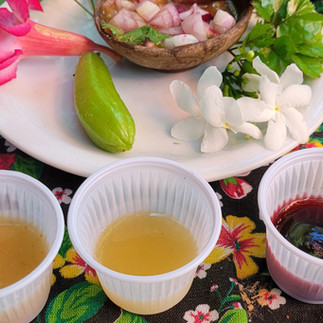Para acompanhar, um bolinho de peixe feito na casa com caipirinha, seguidos de moqueca de aratu com camarão, a sobremesa (por conta da casa) de punheta com canela e mais um mix de diversos doces feitos por Dona Sandra pra fechar. Tudo com o carinho e as "carinhas" de legumes que Dona Sandra coloca em cada prato.